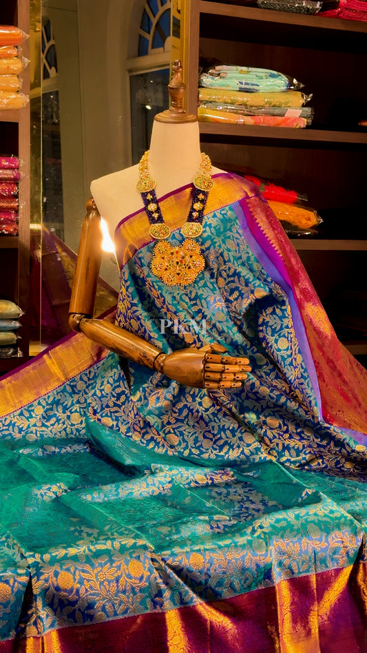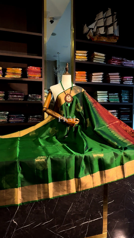 A collection of Hijab-Friendly Kanchipuram and Soft Silk saris in exquisite jewel and pastel shades.