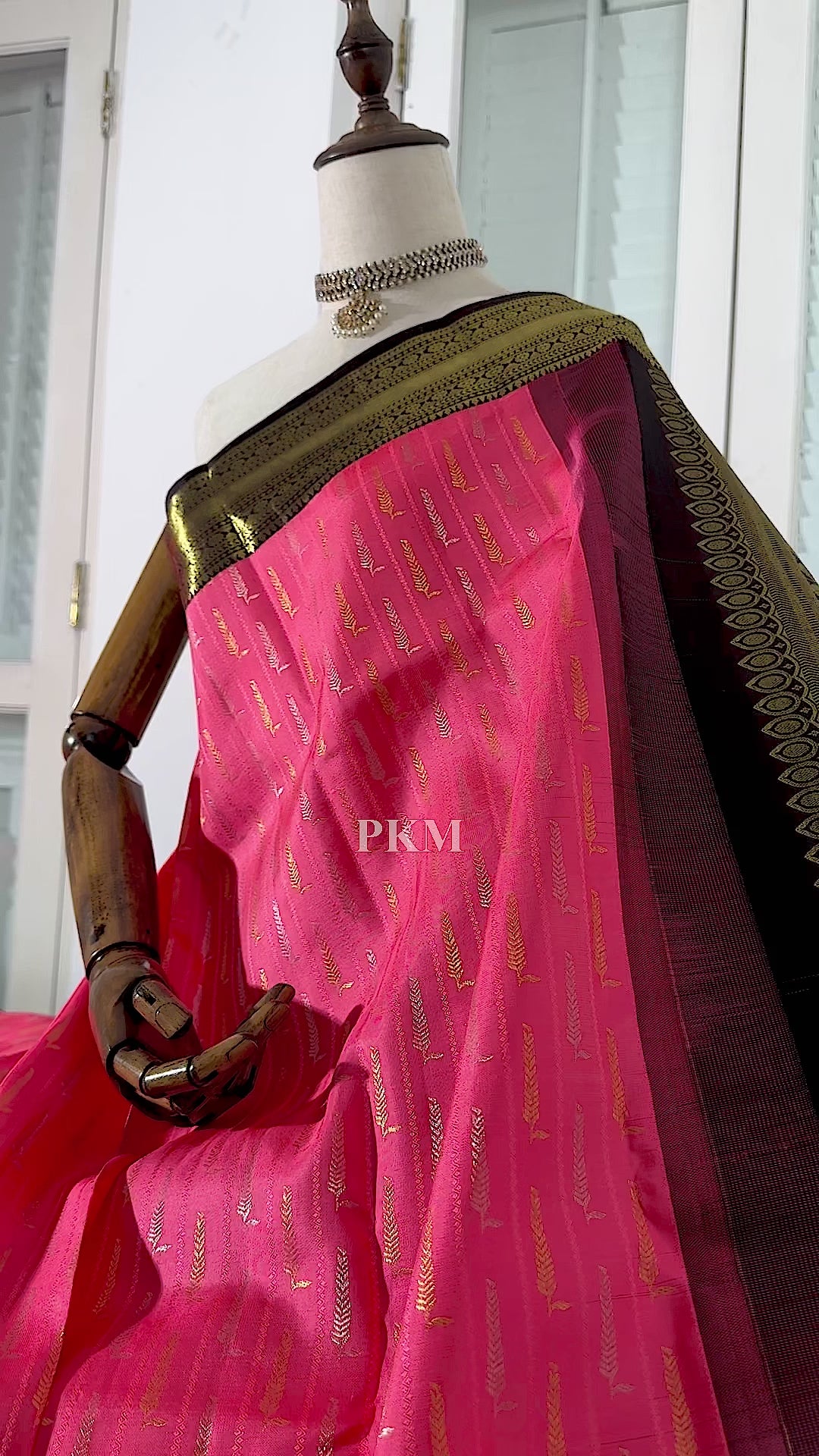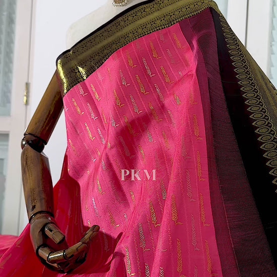 Black Pink Pure Handloom Korvai Kanchipuram Silk Saree.
