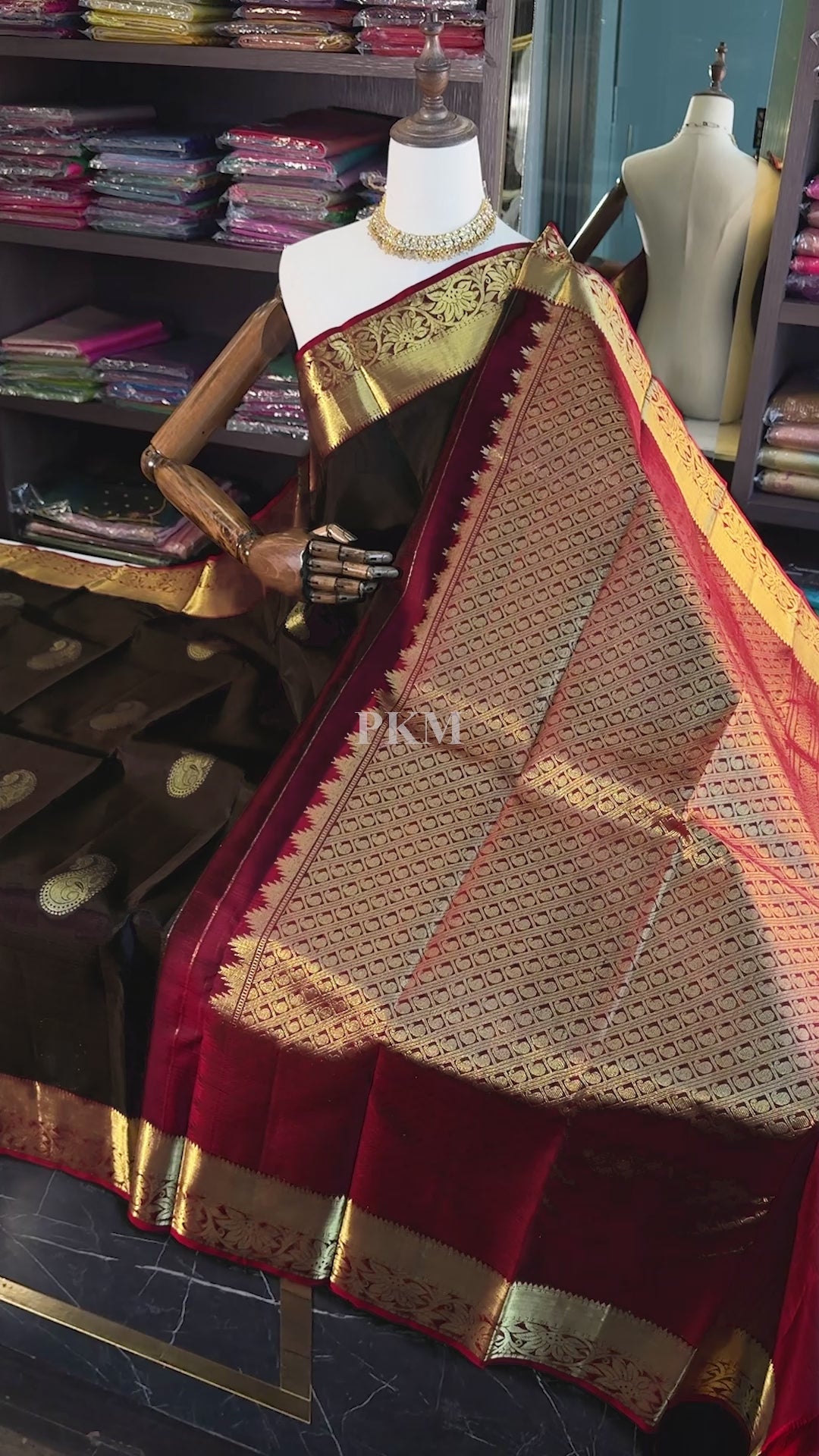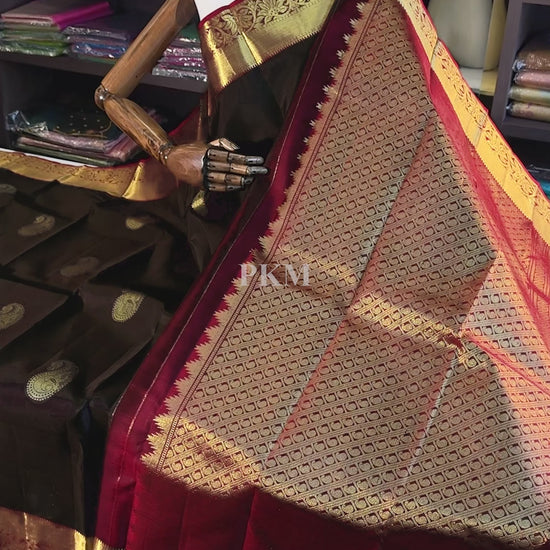 Gold Jari Chocolate Brown Pure Handloom Kanchipuram Silk Saree