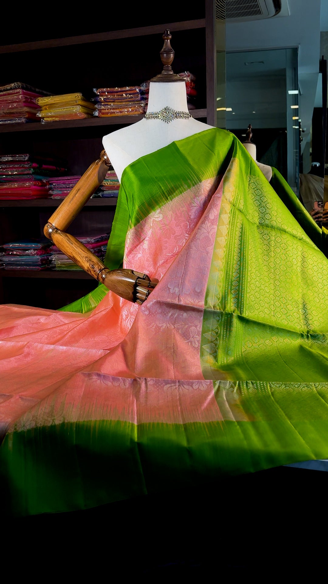 Perfectly matched contrast blouse material in Zesty Green.