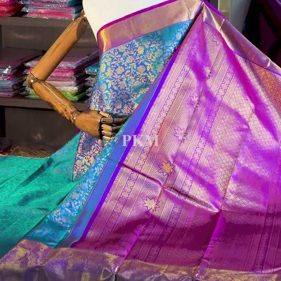 Blue-Green Mayil Double Tone Shade Pure Handloom Brocade Kanchipuram Silk Saree