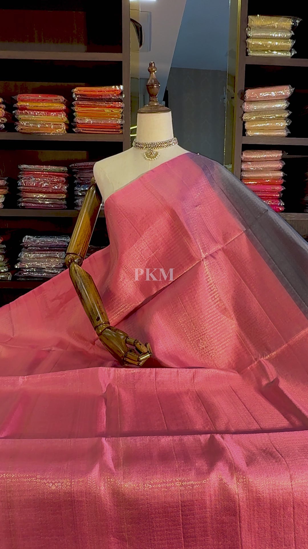 A stunning statement piece, this saree is crafted from Pure Handloom Brocade Soft Silk in a Gemstone Pink. The body is adorned with intricate, Silver Geometric Motifs that are meticulously spaced for a touch of refined elegance. Vibrant Rocky Silver Pallu with Silver Jari.