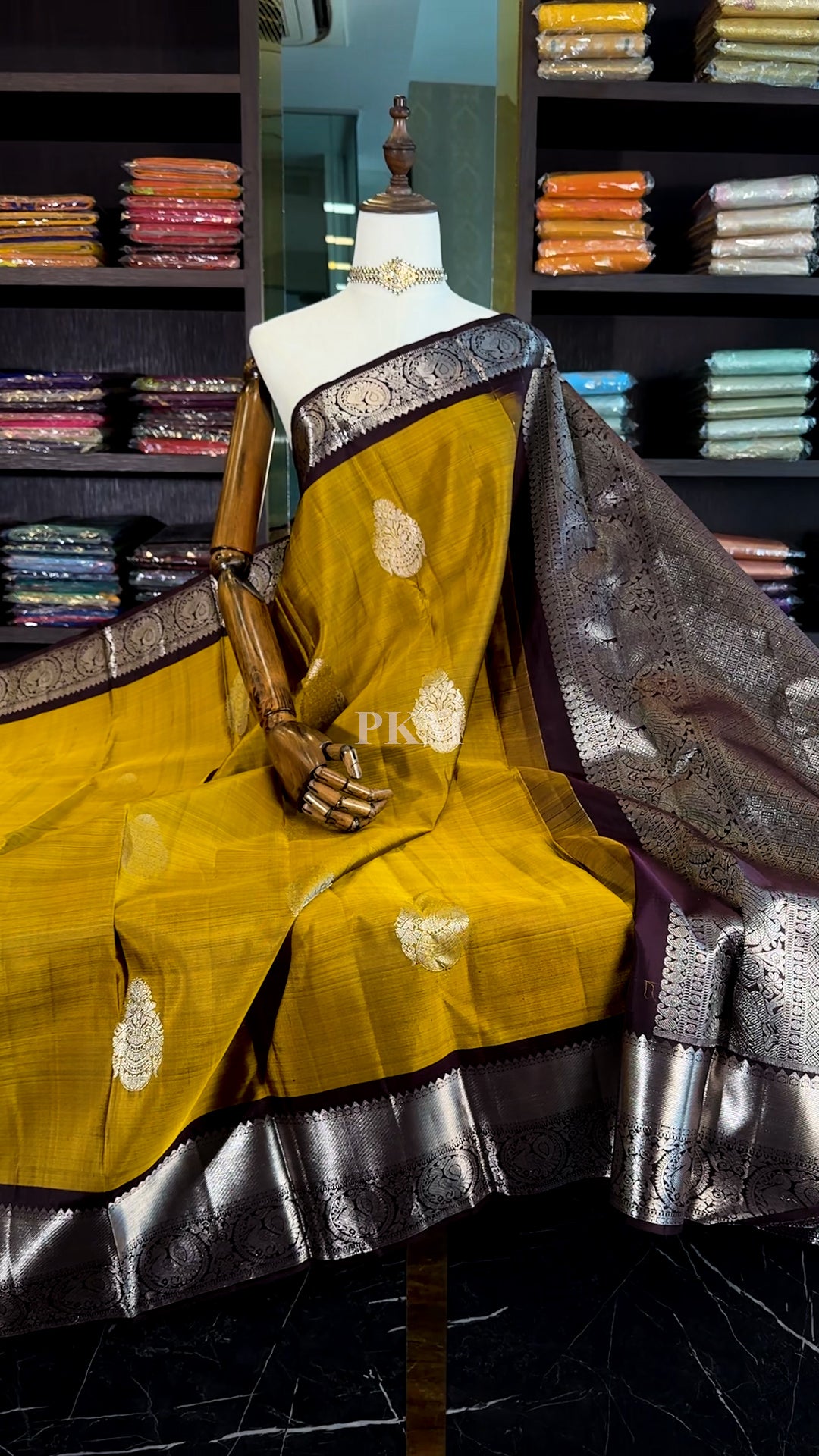 Vendhayam Fenugreek Shade Pure Handloom Kanchipuram Silk Saree