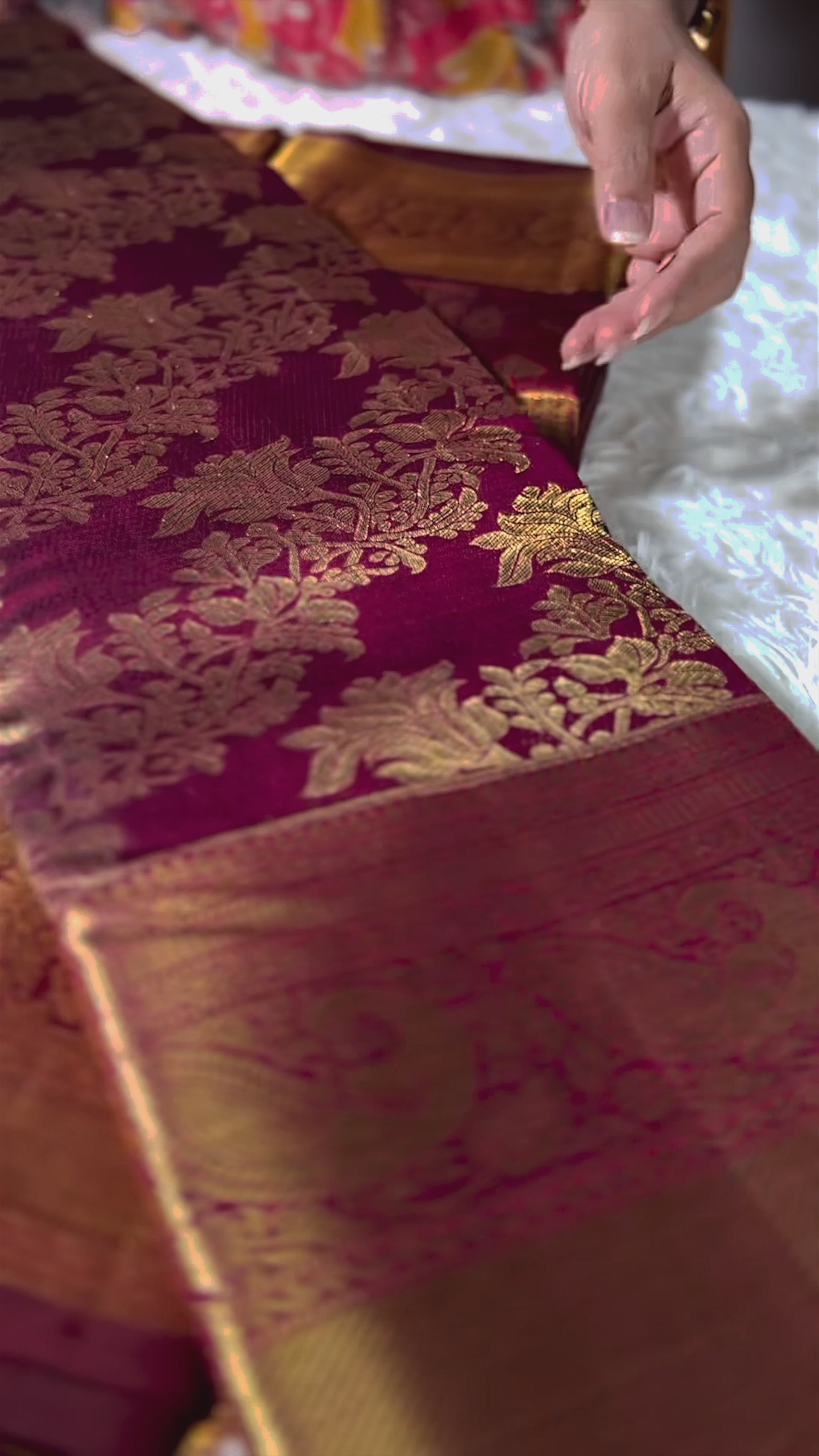 Completed with a matching blouse piece in matching Kismis Thiratchai Purple for a graceful drape.