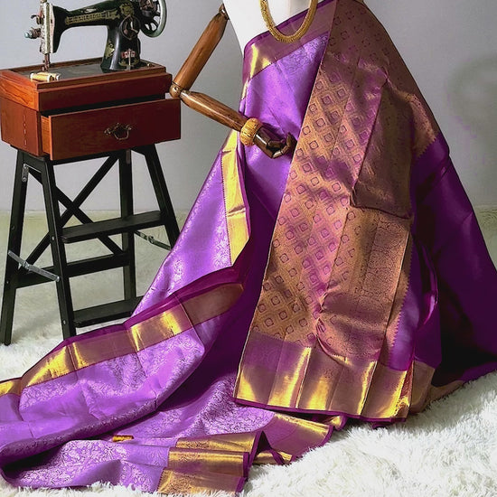 Vengayam Onion Purple on Purple Shade Pure Handloom Brocade Kanchipuram Silk Saree