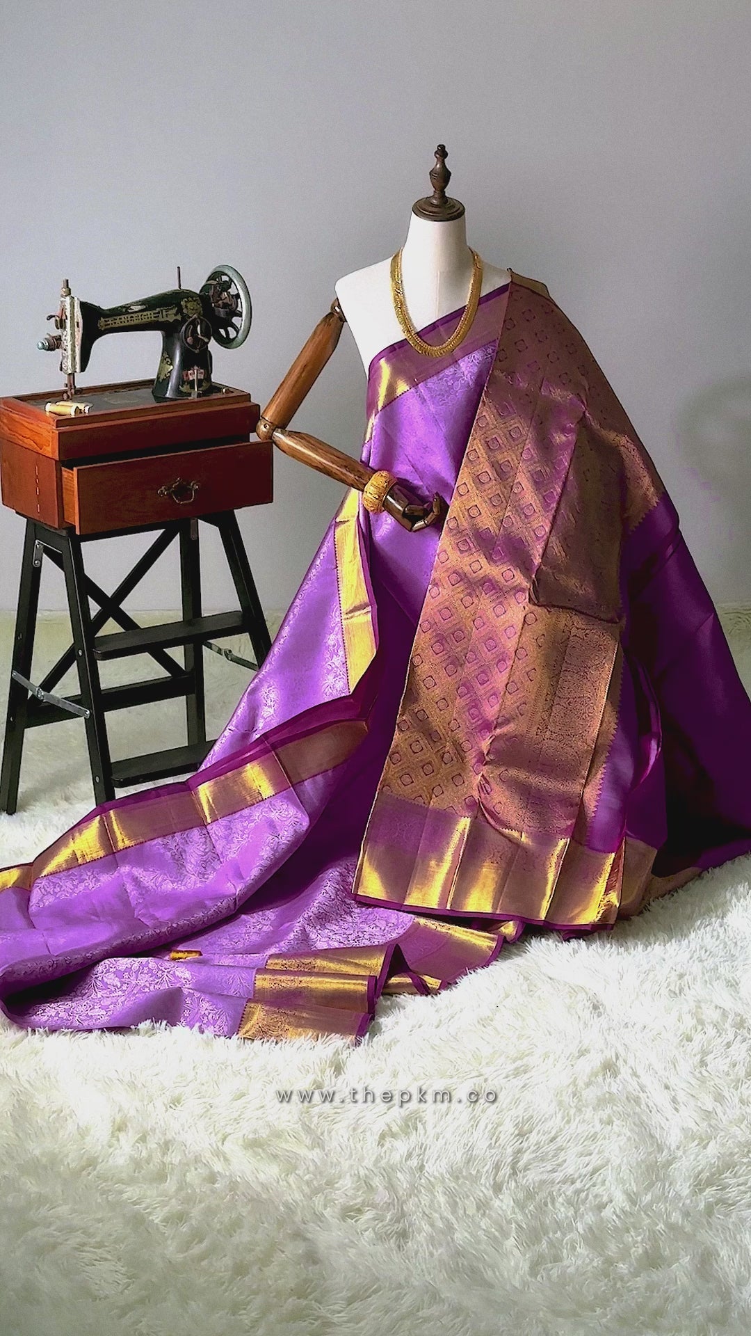 Completed with a contrast blouse piece in matching Vengayam Dark Purple for a striking finish.