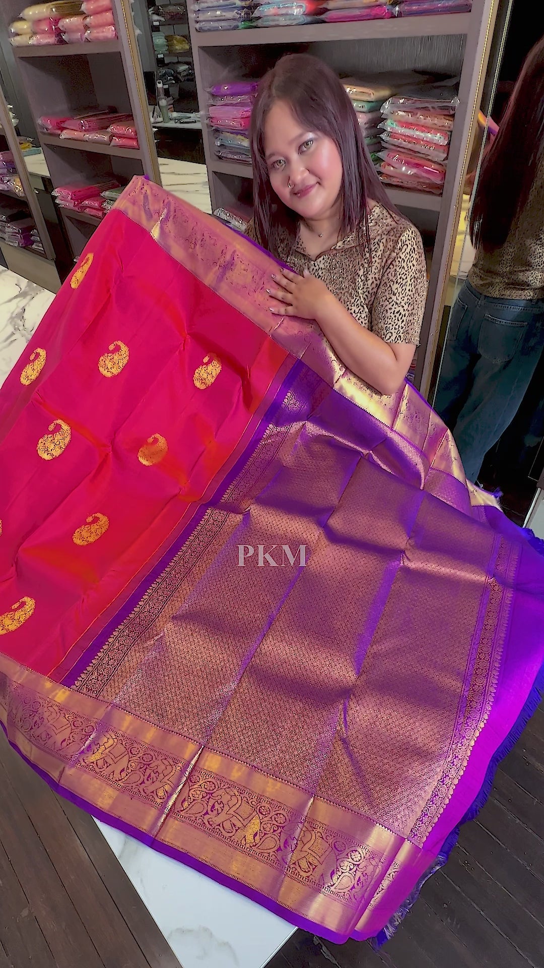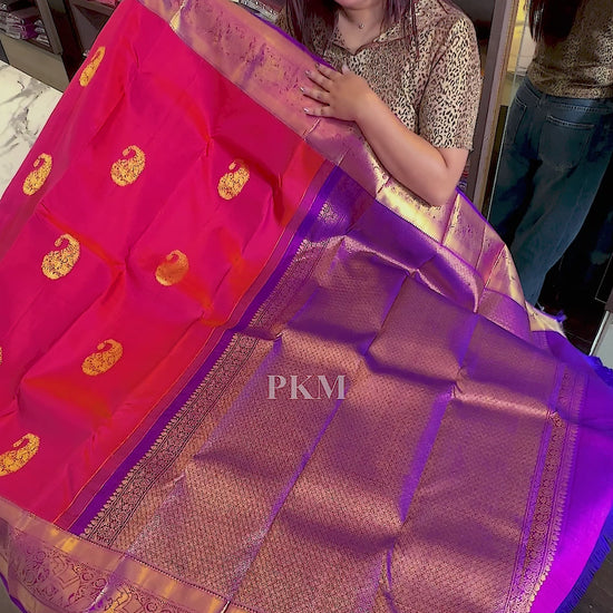 Violet Flame Double Shade Pure Handloom Kanchipuram Silk Saree