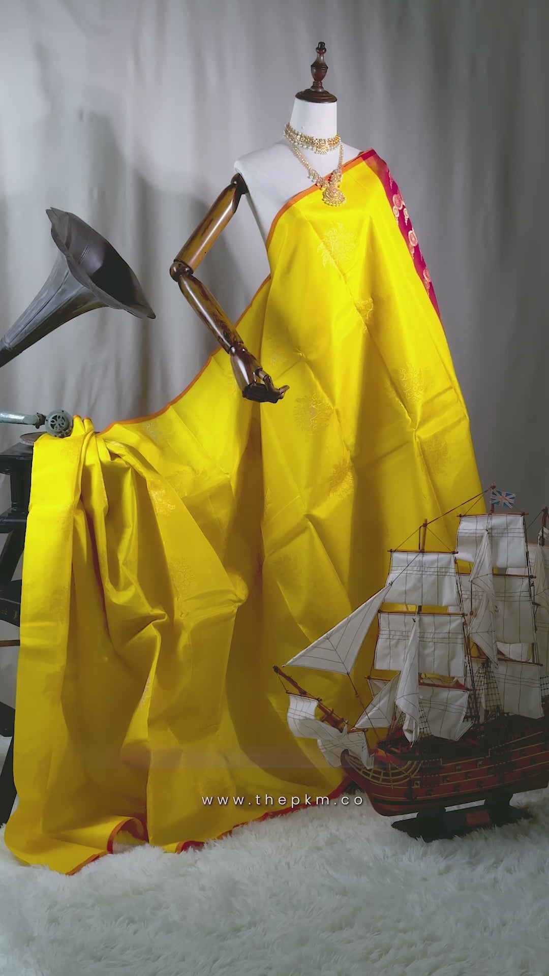 Boondi Laddu Manjal Yellow & Crimson Pink Soft Silk Saree Pure Handloom