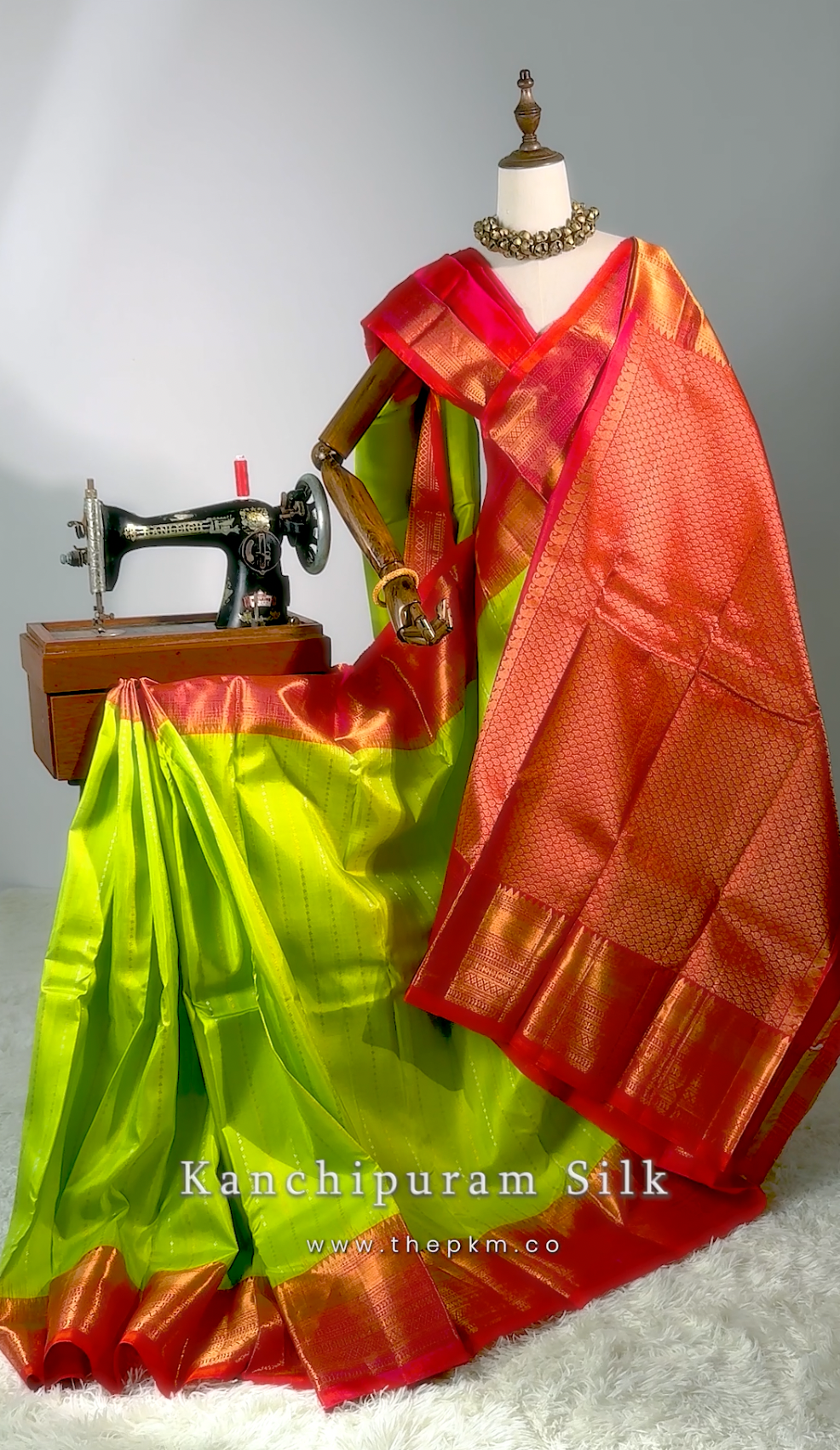 Kili Parrot Green Shade Pure Handloom Kanchipuram Silk Saree