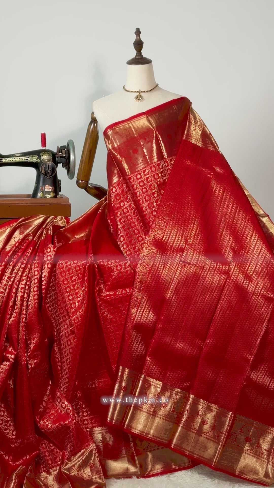 The Pallu: Matching Kungumam Red Gold pallu, beautifully complementing the body.