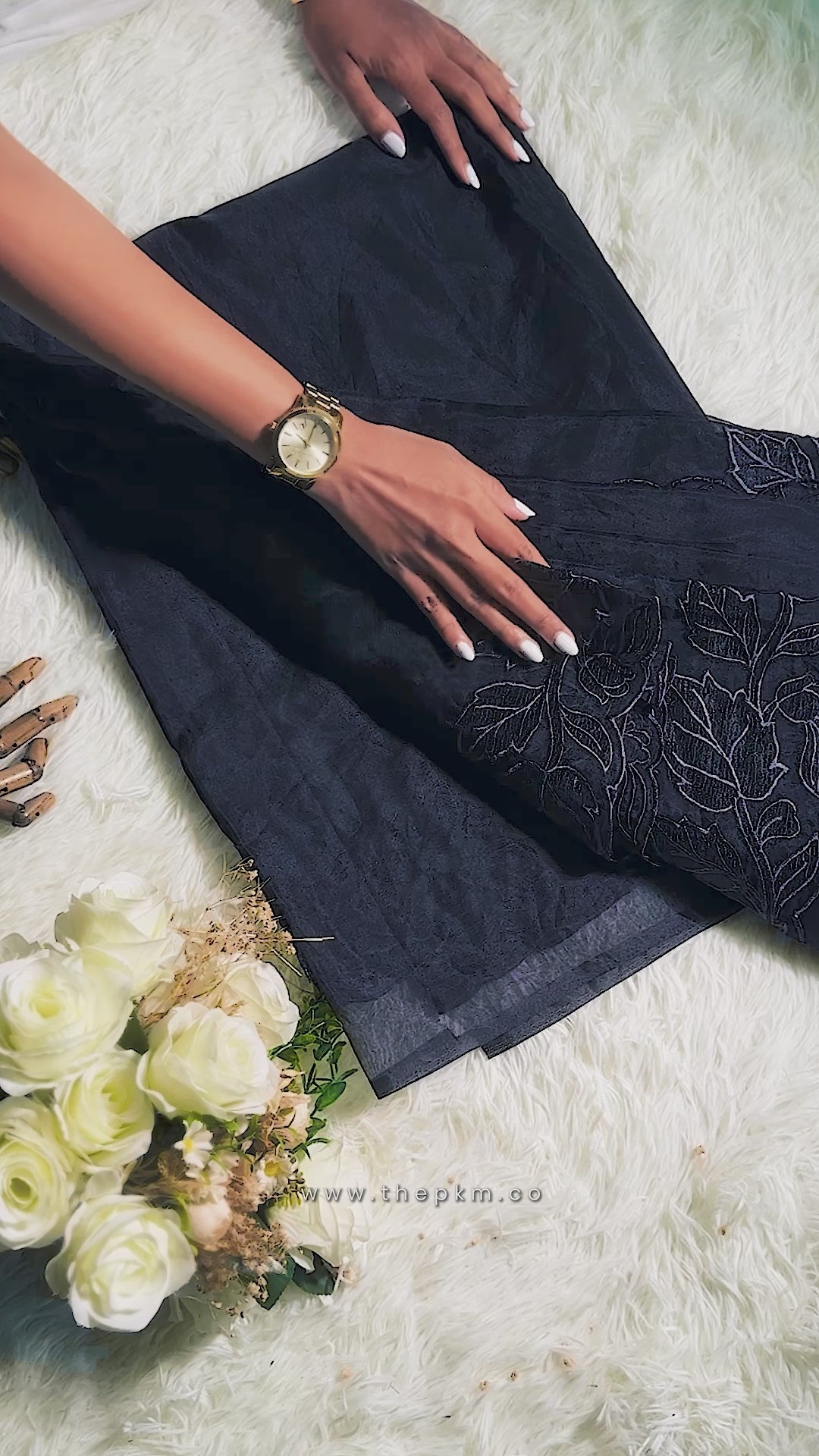 • The Pallu: A seamless Midnight Blue Pallu that flows naturally from the body, maintaining the saree's monochromatic and airy aesthetic.