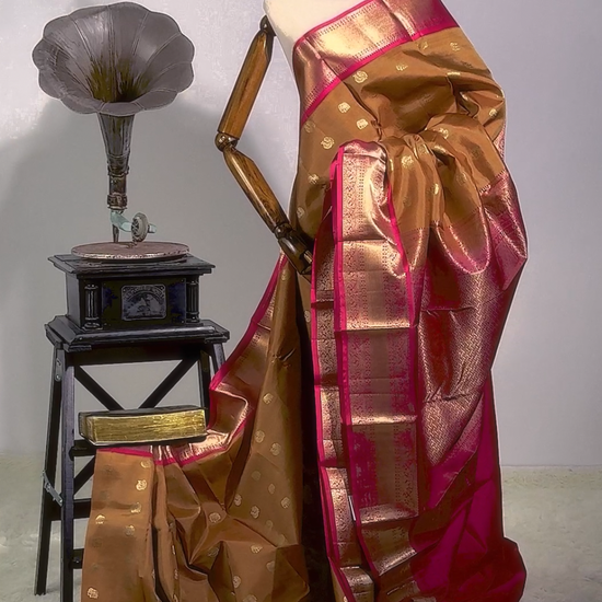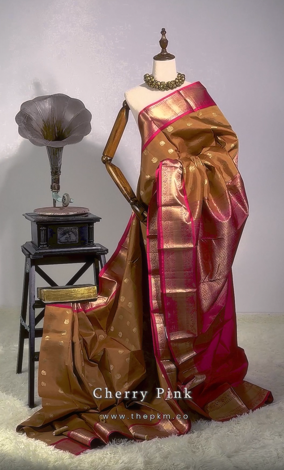 Teh Tarik & Cherry Pink Heritage Soft Silk Saree